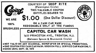 The pharmacy was part of Dales, a store that opened in the summer of '66 on Brunswick Circle. Dale's closed in the mid- to late-70's. Today the N.J. State Lottery offices occupy the site. In an amazing transformation, what was, in the Dales era Trenton, NJ has today become Lawrenceville, NJ, according to "location" information on the State Lottery's web page. Another example of the area's aggressive de-Trentonization over the last 30 years. |